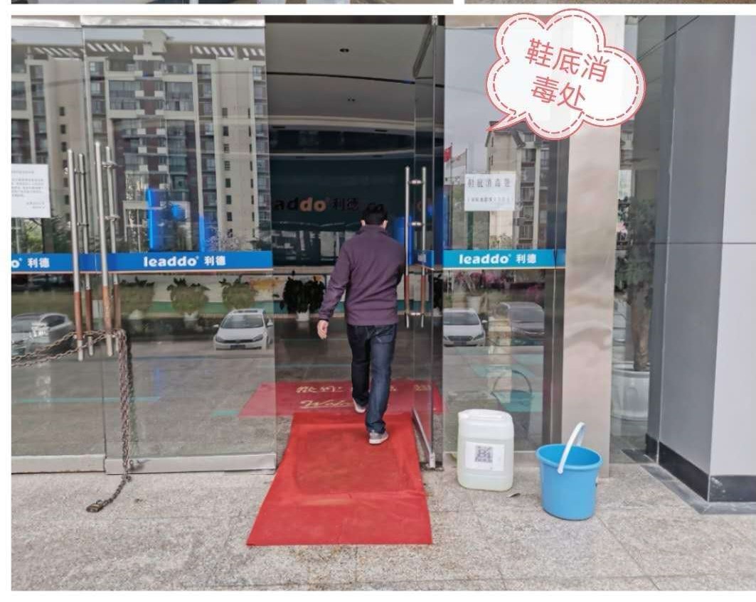 經(jīng)過第一道測(cè)溫和噴霧消毒后,在進(jìn)入辦公樓區(qū)域時(shí)每位員工都會(huì)經(jīng)過一個(gè)放置于大樓入口處的腳底消毒池,這樣有效的隔絕了容易忽視的來自腳底的病毒,杜絕了把病毒帶進(jìn)辦公區(qū)。